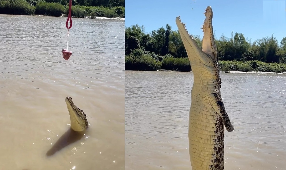 پرش شگفت انگیز تمساح! قدرت چنگ و دندان در ارتفاع (فیلم)