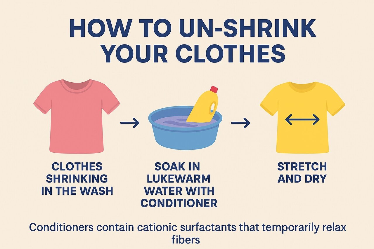 با توجه به اینکه نرمکنندهها حاوی موادی به نام سورفکتانتهای کاتیونی هستند که موقتاً الیاف را لغزنده و انعطافپذیر کرده و امکان کشیده شدن دوباره پارچه را فراهم میکنند، این روش احتمالاً مؤثر خواهد بود. البته باید در نظر داشته باشید که این شیوه نمیتواند آب رفتنهای شدید پارچهها را جبران کند؛ اما در اکثر موارد لباس را بهاندازهای که دوباره قابلپوشیدن باشد احیا خواهد کرد.