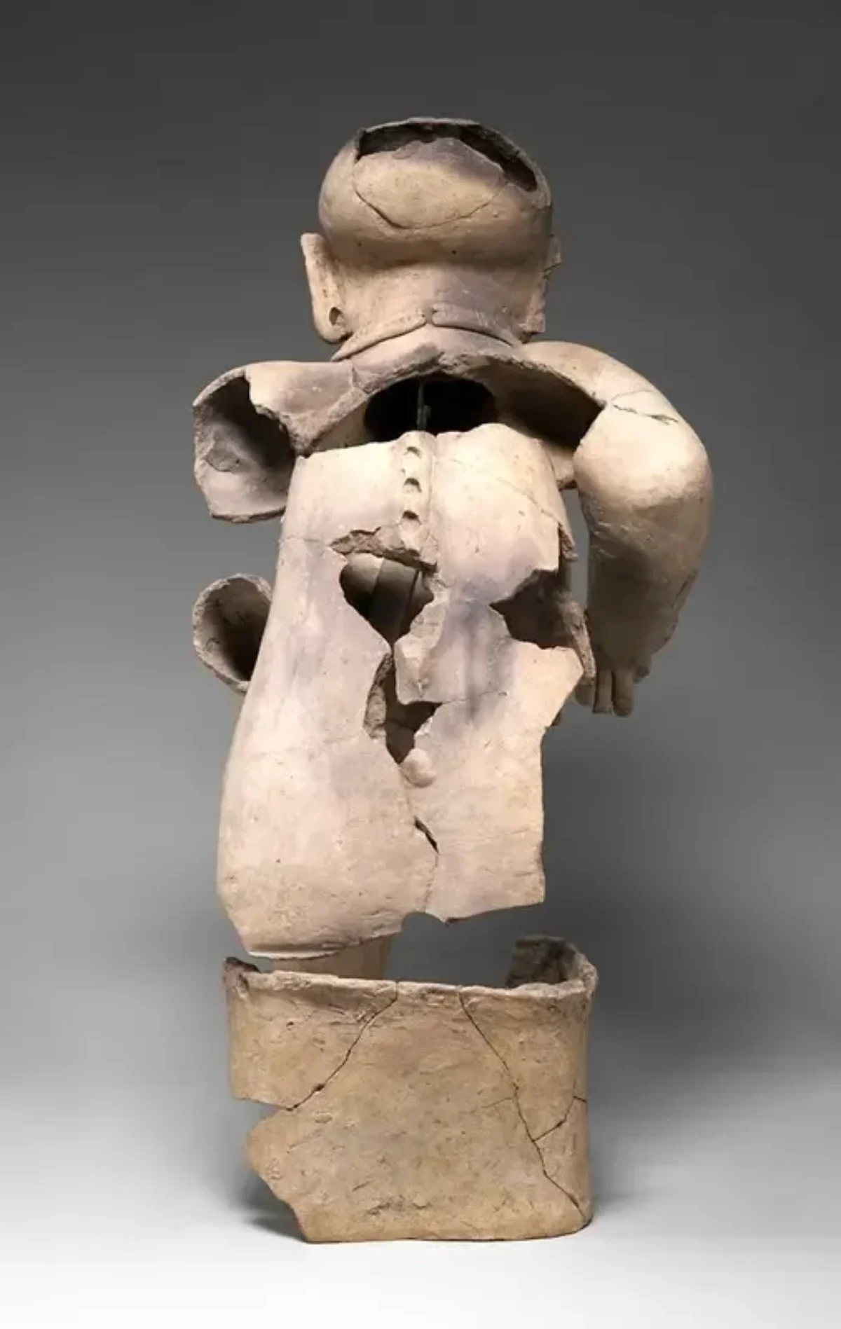 این تندیس سوراخ‌های کوچکی در بینی، گوش‌ها و نوک سینه‌ها دارد که شاید گواه این باشد که او زمانی زیورآلاتی از طلا داشته است. این پیکره از خمیر گل خاکستری ساخته شده که همواره توسط مردم توماکو–تولیتا به کار می‌رفت و به‌سبب پیچیدگی طرح، تکمیل آن شاید چند روز زمان برده است. شاید این اثر در روزگار باستان رنگ‌آمیزی و صیقل داده شده، اما رنگ‌ها در گذر زمان از میان رفته‌اند.