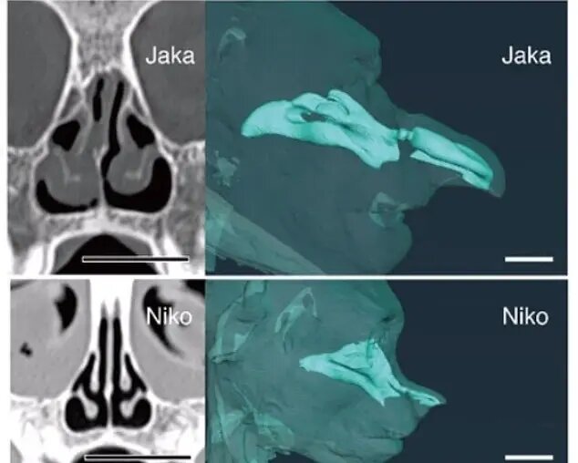 محققان دانشگاه اوزاکا، سیتیاسکنهایی را روی نمونههای گرفته شده از میمونهای بینیدراز انجام دادند که به آنها امکان داد مدلهای دیجیتالی سهبعدی دقیقی از مجاری بینی این میمونها بسازند.