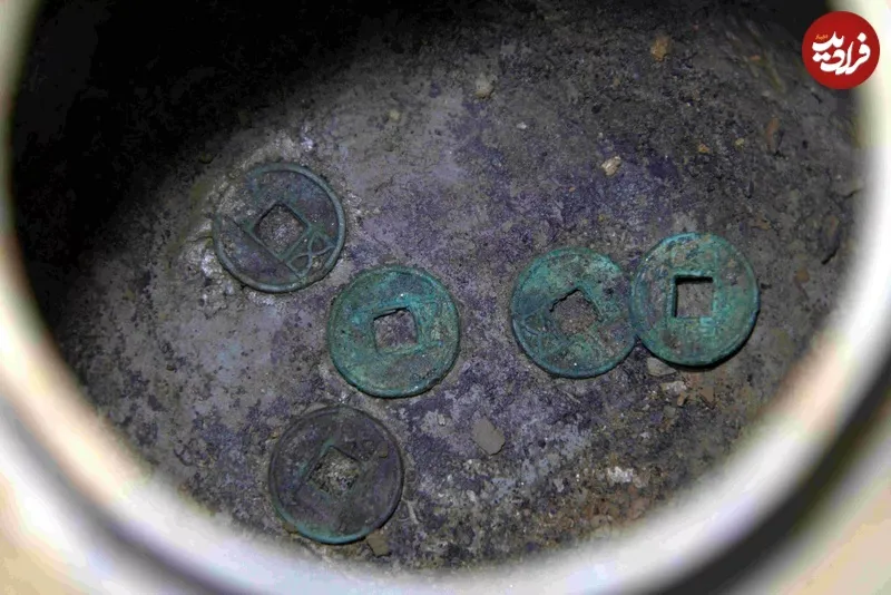 پنج سکۀ چینی در درون کوزهای قرار داشت که در یکی از گوشههای بنای باستانی انبار یخ یافت شد.