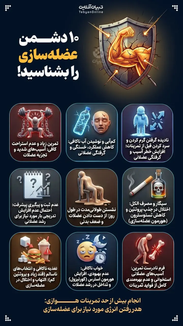 ۱۰ دشمن عضله‌سازی را بشناسید! (اینفوگرافیک)