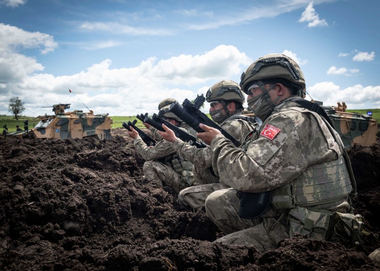 ترکیه با نیرویی حدود ۸۸۳ هزار نفر و بودجه سالانه نزدیک به ۴۷ میلیارد دلار، جایگاه ویژهای در منطقه دارد. نقطه قوت این کشور، صنعت دفاعی داخلی رو به رشد است که محصولات شناختهشدهای مانند پهپاد بیرقدار تیبی۲ را تولید میکند. موقعیت جغرافیایی ترکیه در نقطه تلاقی اروپا، آسیا و خاورمیانه، همراه با حضور فعال در ناتو، آن را به قدرتی نظامی با نفوذ منطقهای و نقش فرامنطقهای تبدیل کرده است.
