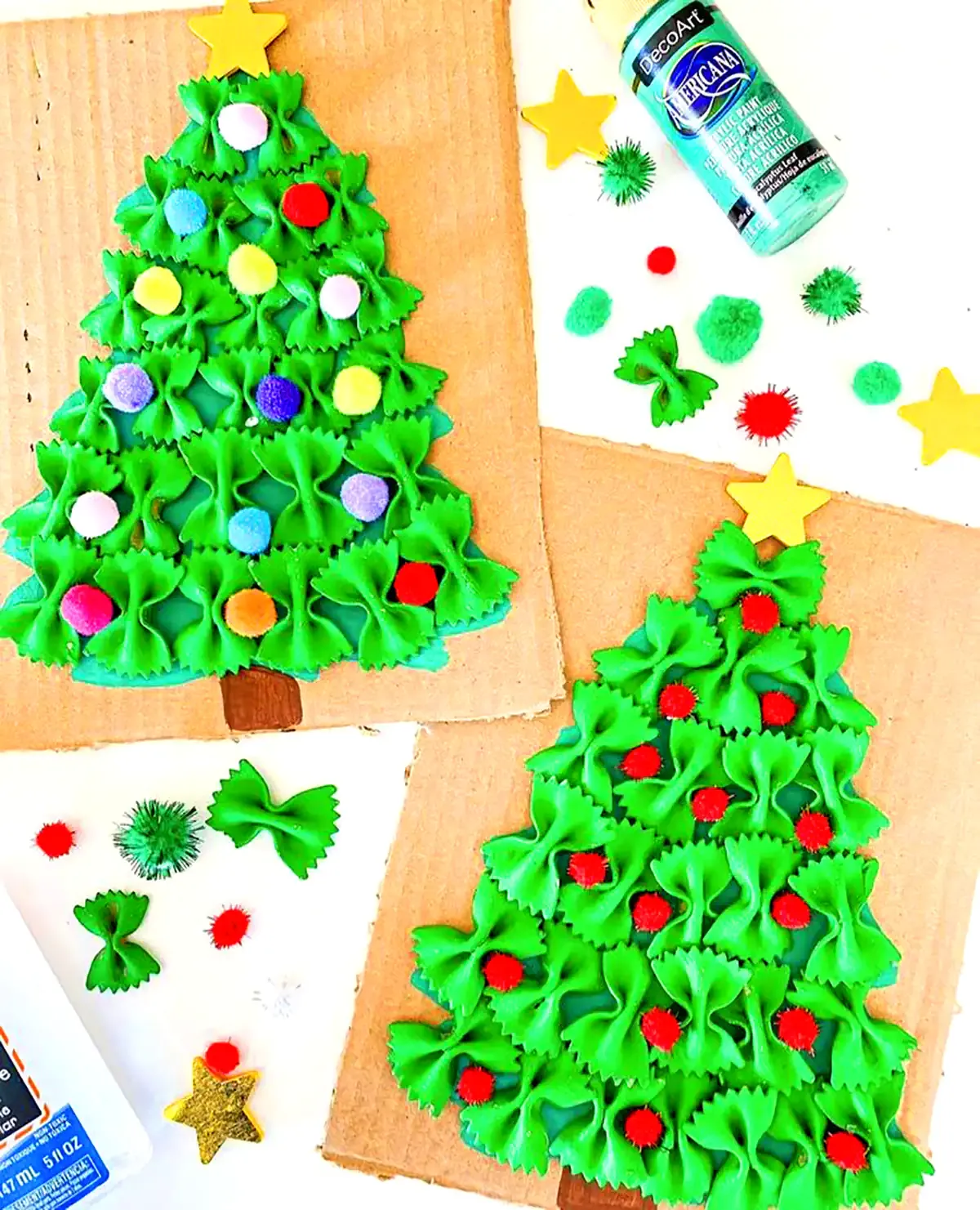 یکی از ایده‌های محبوب برای کاردستی کودکانه با ماکارونی، ساخت تابلوهای تزئینی است. کودکان می‌توانند با چسباندن ماکارونی به شکل‌های مختلف روی مقوا یا چوب، تابلوهای زیبا و خلاقانه‌ای درست کنند. سپس با رنگ‌آمیزی ماکارونی‌ها و اضافه کردن جزئیات دیگر، تابلوها به شکل دلخواهشان در می‌آید. این تابلوها را می‌توان در اتاق کودک یا حتی به عنوان هدیه به دیگران هدیه داد.