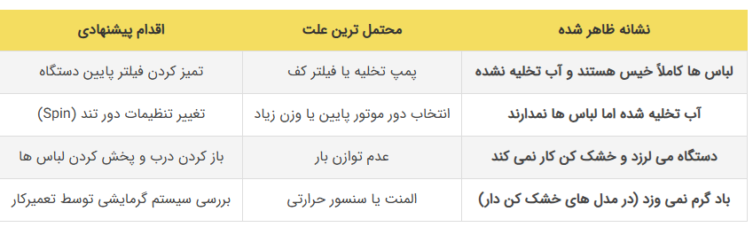 جدول عیب یابی فوری خشک کن ماشین لباسشویی