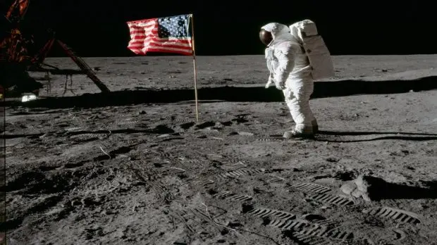 در اوج جنگ سرد، مهمترین ماموریت برای ایالات متحده، فرستادن انسان به ماه بود تا برتری خود را در مسابقه فضایی نشان دهد. در ۲۰ ژوئیه ۱۹۶۹، نیل آرمسترانگ و باز آلدرین، اولین انسانهایی بودند که پا بر سطح ماه گذاشتند. برنامه فضایی آپولو (Apollo Program) با ۱۱ پرواز تا سال ۱۹۷۲ به پایان رسید. این برنامه در زمان خود ۲۸ میلیارد دلار (شامل پروژه جمینی و برنامه رباتیک ماه) هزینه داشت که با تعدیل تورم، امروزه به بیش از ۲۸۰ میلیارد دلار بالغ میشود و آن را به پرهزینهترین ماموریت فضایی تمام دوران تبدیل میکند.