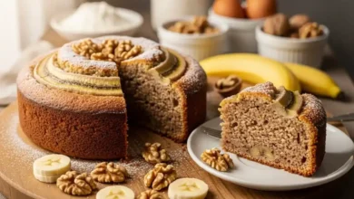 طرز تهیه کیک یخچالی موز و گردو