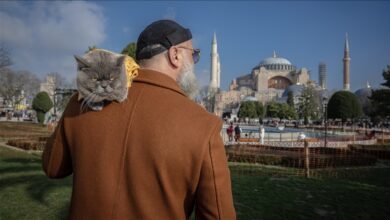 عصرترکیه – گربه ای به نام «رئیس» در حالی که بر روی شانه اش دراز کشیده در مکان ها و خیابان های تاریخی و توریستی استانبول گردش می کند و توجه عابران و توریست ها را به خود جلب کرده است. تصاویر-آناتولی ترجمه و زیرنویس – عصرترکیه