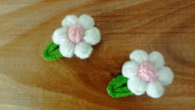آموزش بافت گل پفکی با چنگال (فیلم)
