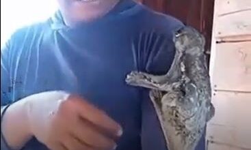 این مرد این جانور عجیب را در باغی در اندونزی پیدا کرده (فیلم)