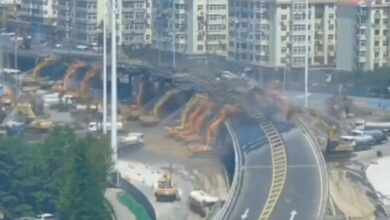 اشتباه راننده و چپ کردن تریلی وسط خیابان! (فیلم)