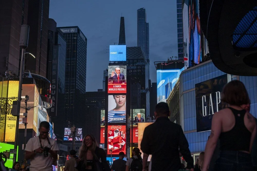 جملات معروف رجب طیب اردوغان، رئیسجمهور ترکیه، با مضمون «جهان بزرگتر از پنج است» و «جهانی عادلانهتر ممکن است» بر روی نمایشگرهای میدان تایمز(شناخته شده ترین مکان در جهان) و خیابانهای مرکزی نیویورک به نمایش درآمد.
