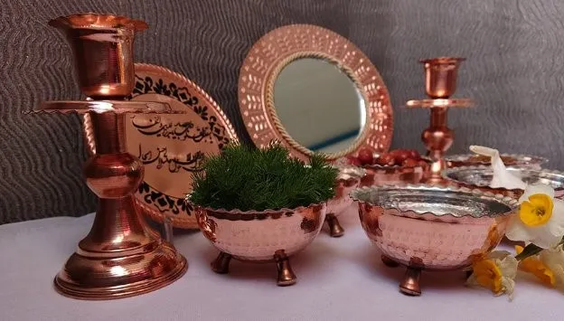 پک هدیه سازمانی نوروزی متشکل از ظروف مسی