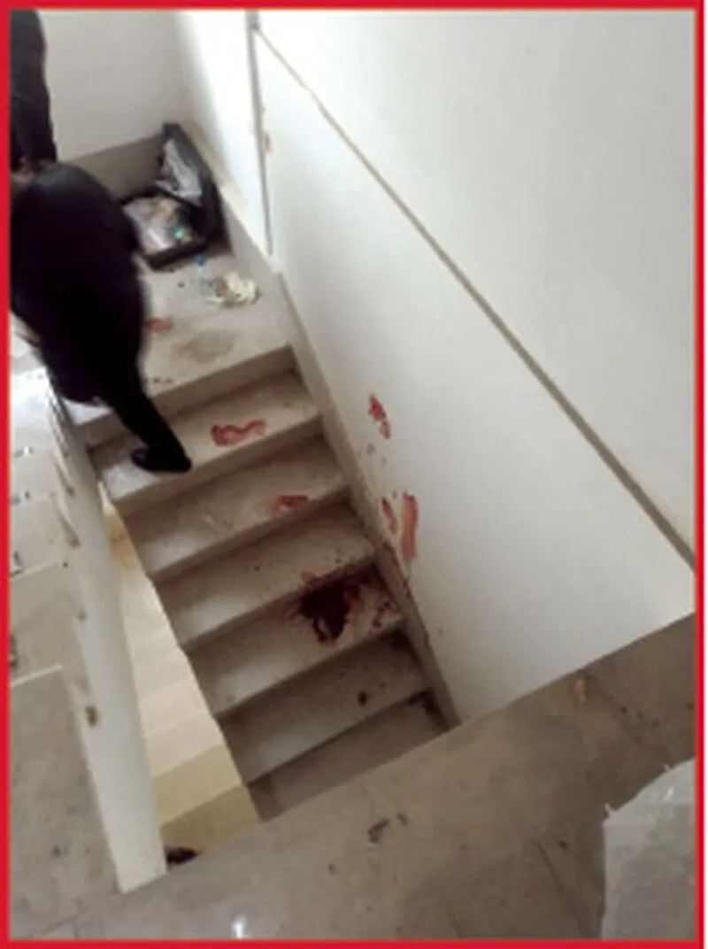 او که یقین داشت فردی قصد دارد برای سرقت وارد منزلش شود بیدرنگ به طرف در منزل حرکت کرد و در یک لحظه با همسایه طبقه چهارم روبهرو شد که در برابرش قرار گرفته بود. اگرچه جوان ۳۰ساله تلاش میکرد به طبقات پایین فرار کند، اما ضربات پی در پی خنجر بر نقاط مختلف پیکرش فرود آمد و ردپاهای خونین او روی تکتک پلههای ساختمان نقش بست.